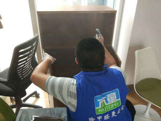 長(zhǎng)沙木童服務(wù)商使用木童2號(hào)三代對(duì)其辦公家具內(nèi)進(jìn)行了重點(diǎn)除甲醛治理,并用木童家具甲醛清除劑對(duì)抽屜底部等密度板裸露部分進(jìn)行了涂刷。治理后,經(jīng)第三方CMA機(jī)構(gòu)復(fù)檢,甲醛、苯系物等指標(biāo)均合格。集團(tuán)相關(guān)負(fù)責(zé)的領(lǐng)導(dǎo)對(duì)治理效果非常滿意。